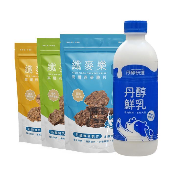 鮮乳930ml/瓶、高纖燕麥脆片150g/包